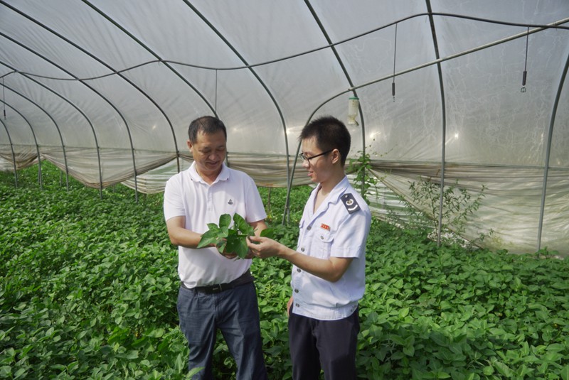 国家税务总局浏阳市税务局工作人员将政策红利送进蔬菜大棚。受访者供图